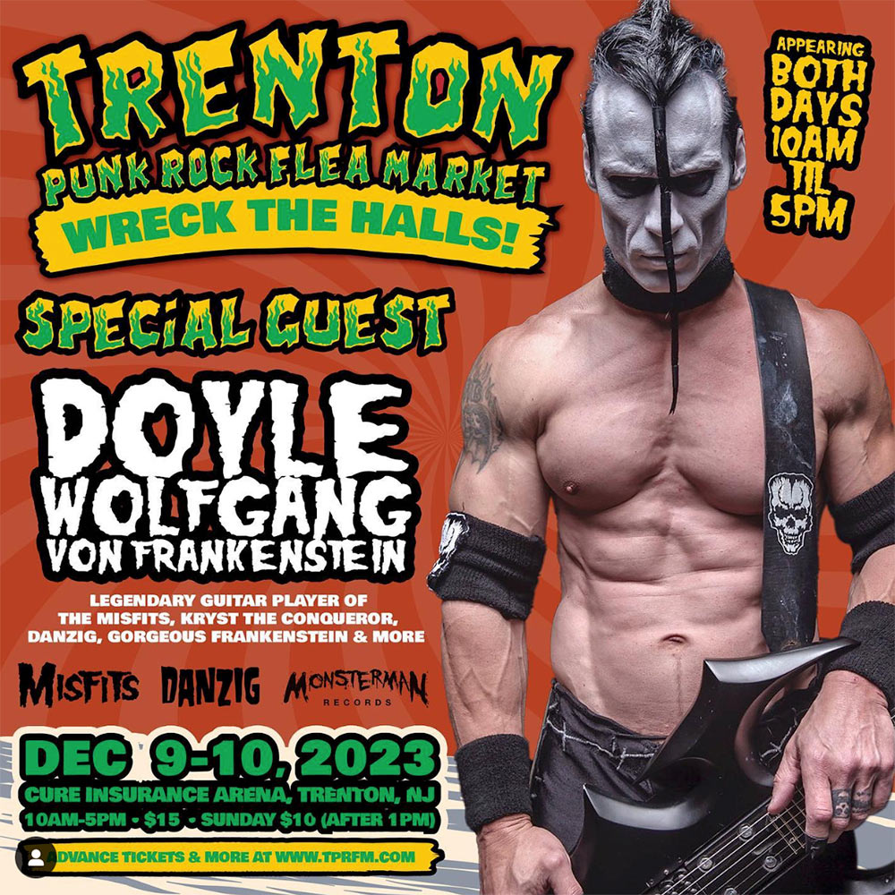 Doyle Wolfgang von Frankenstein – the legendary guitar player of The Misfits, Kryst the Conqueror, Danzig, Gorgeous Frankenstein and more – is one of the special guests for the December 2023 edition of the Trenton Punk Rock Flea Market: Wreck the Halls. The event takes place at the Cure Insurance Arena in Trenton, New Jersey.