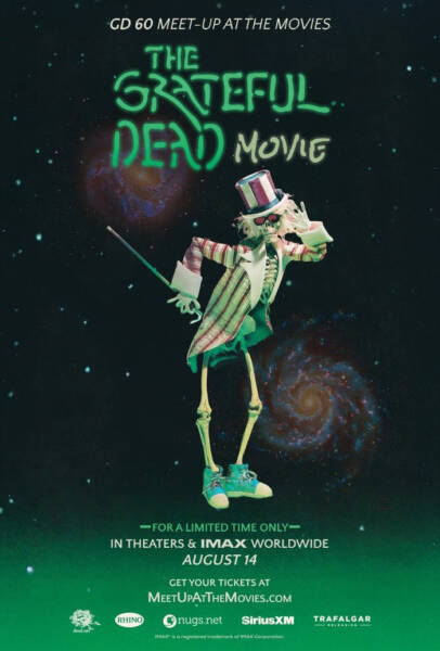 Rhino Entertainment and Trafalgar Releasing celebrate the 60th Anniversary and enduring legacy of the legendary band The Grateful Dead during the 2025 edition of Meet-Up at the Movies. The 2025 edition of the annual theatrical event brings the Grateful Dead’s eponymous concert film, The Grateful Dead Movie, to cinemas and IMAX in select territories around the world beginning August 14, 2025. Prior to the August 14th release date, advanced previews in 60 IMAX North American locations are held on August 13, 2025.