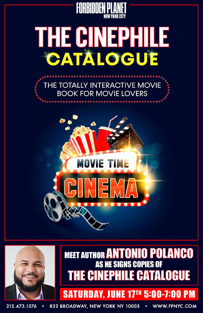 Forbidden Planet New York is hosting an in-store signing with Antonio Polanco, author of the Cinephile Catalogue series on Saturday, June 17th, 2023 from 5 to 7PM.