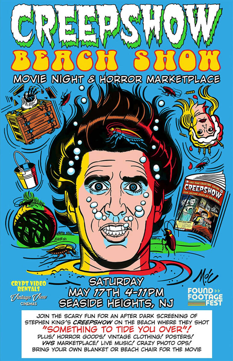 On Saturday, May 17, 2025, Crypt Video Rentals, Vintage View Cinemas and Found Footage Fest host the Creepshow Beach Show Screening and Horror Marketplace in Seaside Heights, New Jersey. Seaside Heights is the location where George A. Romero shot the “Something To Tide You Over” segment from the 1982 cult classic movie.